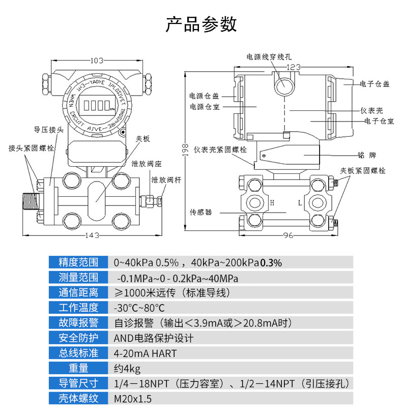 SIN-3051系列壓力變送器利用差動電容檢測的原理,當(dāng)膜片兩側(cè)壓力不一致時,使容室中測量膜片產(chǎn)生位移,其位移量與壓力差成正比,通過電路處理將電容變化量轉(zhuǎn)換成4~20mA的二線制電流或電壓信號,可帶上458協(xié)議或者HART通訊協(xié)議功能。該變送器具有堅固抗振,量程,零點(diǎn)和阻尼現(xiàn)場連續(xù)可調(diào)。