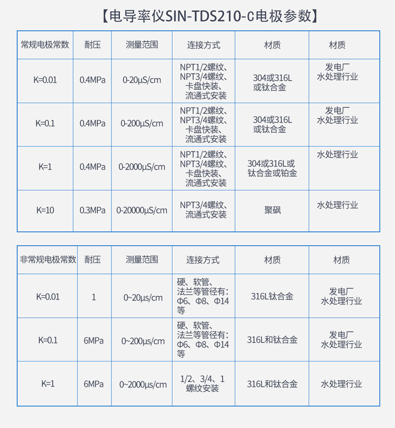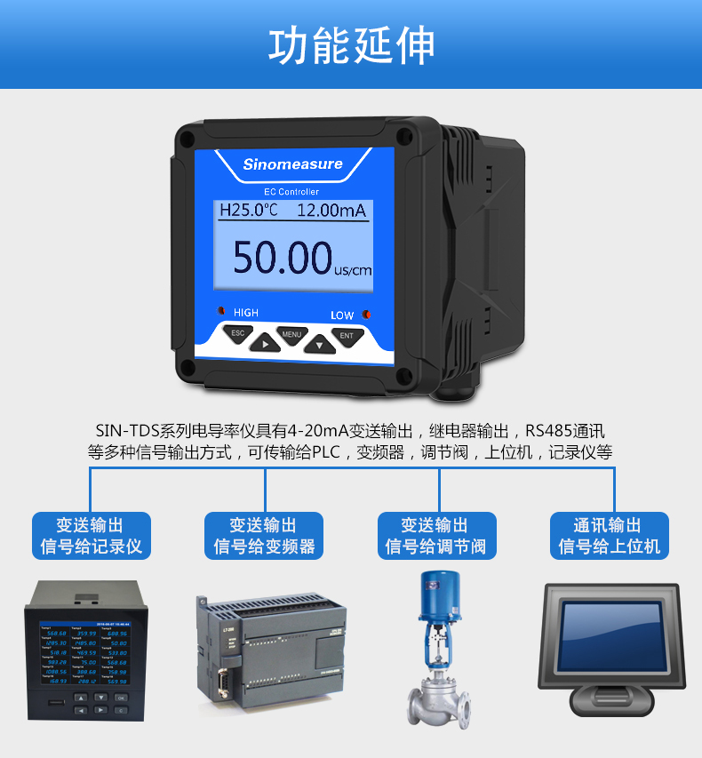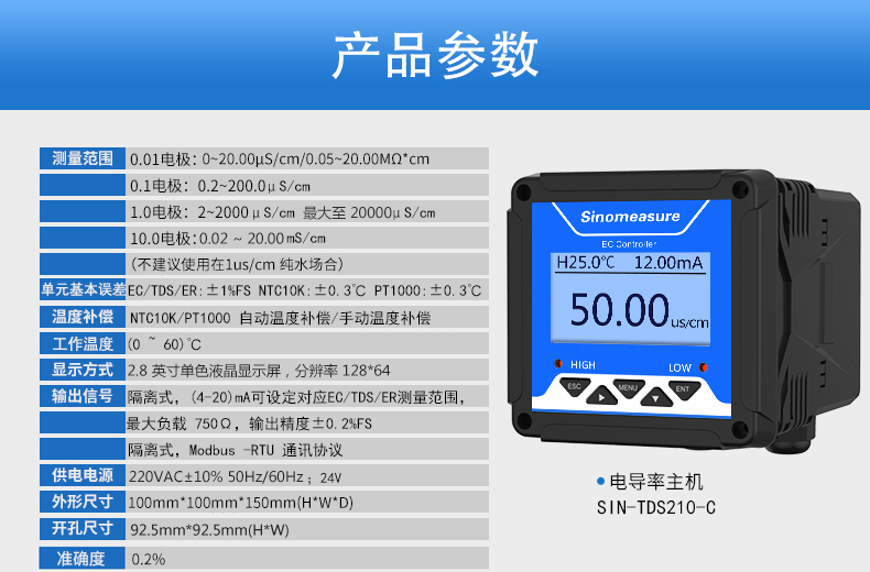 SIN-TDS210-C工業(yè)電導(dǎo)率儀表,廣泛應(yīng)用于火電、化工化肥、冶金、環(huán)保、制藥、生 化、食品和自來水等行業(yè)??刂破髦饕獙?duì)溶液中的電導(dǎo)率/總?cè)芙夤腆w/ 電阻率和溫度進(jìn)行連續(xù)監(jiān)測。