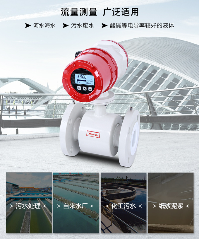 9、測(cè)量精度不受流體密度、粘度、溫度、壓力和電導(dǎo)率變化的影響,傳感器感應(yīng)電壓信號(hào)與平均流速呈線性關(guān)系,因此測(cè)量精度高。