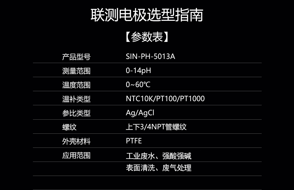 聯(lián)測SIN-pH5100電極使用耐壓半球形pH敏感膜,混合膠GMT構(gòu)成的中介電介質(zhì),Ag/AgCL/KCL外參比體系,無鹽橋(OPEN)開口液接界所構(gòu)成。廣泛用于純水和高純水以及復(fù)雜的化工流程。
