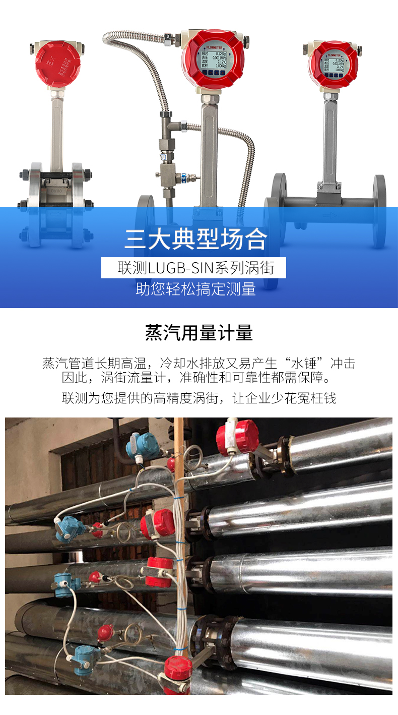 聯(lián)測(cè)LUGB-SIN-A渦街流量?jī)x表廣泛用于供熱公司、熱力公司、化工行業(yè)等行業(yè),對(duì)過(guò)熱蒸汽、飽和蒸汽、壓縮空氣和一般氣體、水和液體的計(jì)量和控制。加厚本體,可有效避免現(xiàn)場(chǎng)管道振動(dòng)帶來(lái)的數(shù)據(jù)波動(dòng)和誤差。多用于高溫場(chǎng)合,例如過(guò)熱蒸汽等工況。