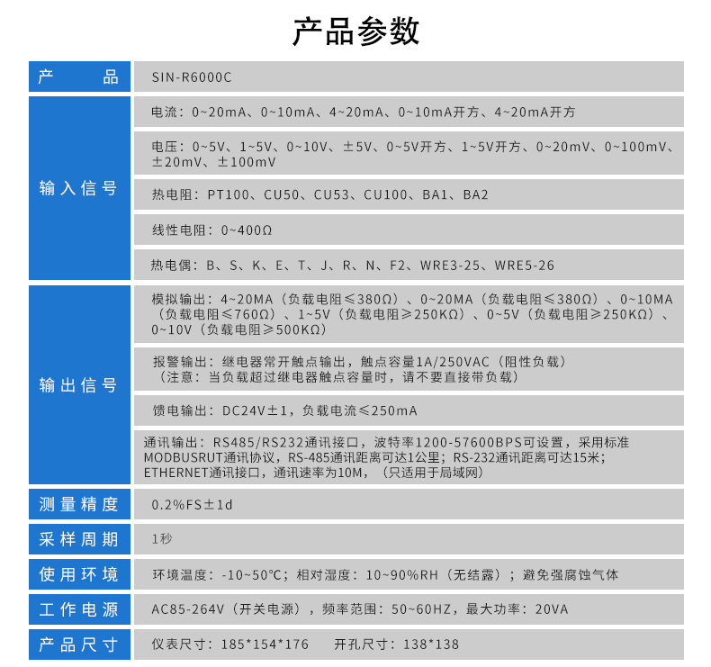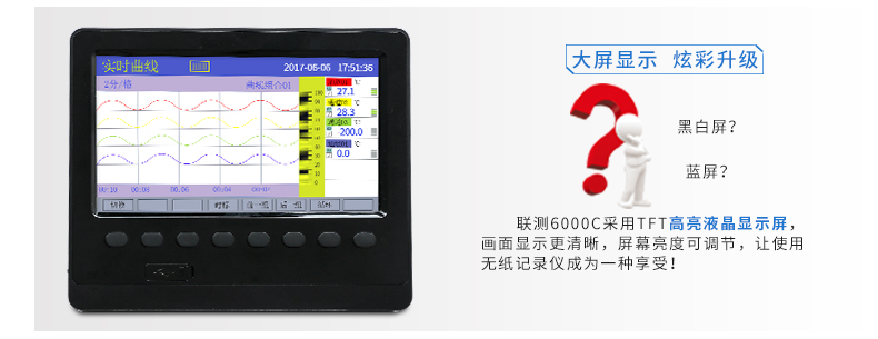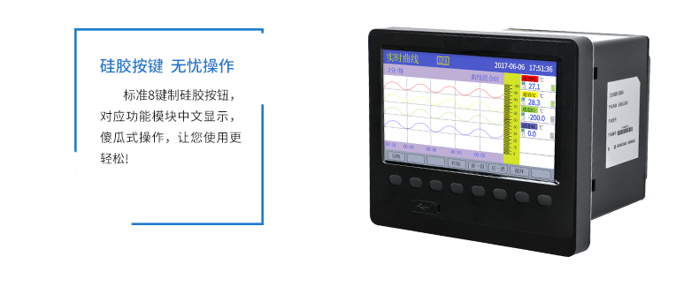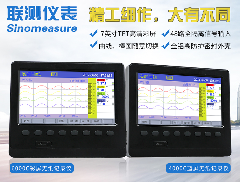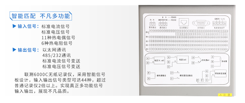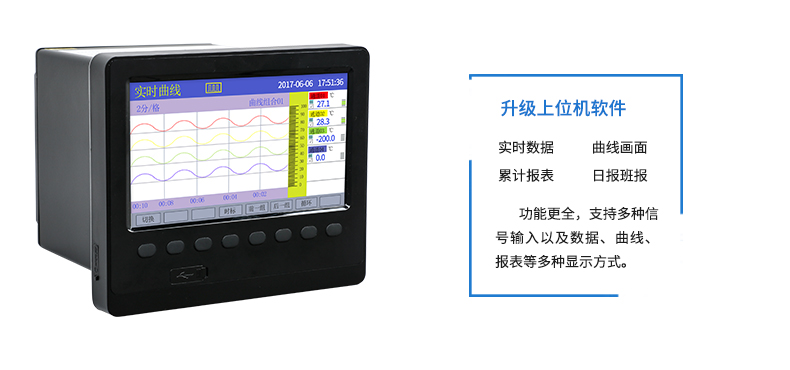 SIN-R6000C系列彩色無(wú)紙記錄儀48路萬(wàn)能輸入(可組態(tài)選擇輸入:標(biāo)準(zhǔn)電壓、標(biāo)準(zhǔn)電流、熱電偶、熱電阻、頻率、毫伏等)??蓭?8路報(bào)警輸出,12個(gè)變送輸出,RS232/485通訊接口,以太網(wǎng)接口,微型打印機(jī)接口和USB接口,SD卡插座;可提供傳感器配電;具有強(qiáng)大的顯示功能,實(shí)時(shí)曲線(xiàn)顯示,歷史曲線(xiàn)追憶,棒圖顯示,報(bào)警列表顯示。