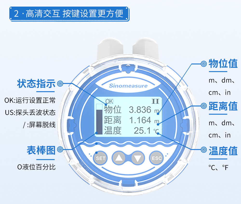 超聲波液位計(測量液位/物位),是一種非接觸式、高可靠性、高 性價比、易安裝維護的液位/物位測量儀器。它不需接觸被測量介質(zhì)就能 滿足大部分液位/物位測量要求,是本公司具有完全自主產(chǎn)權(quán)的新一代超聲波液位計。