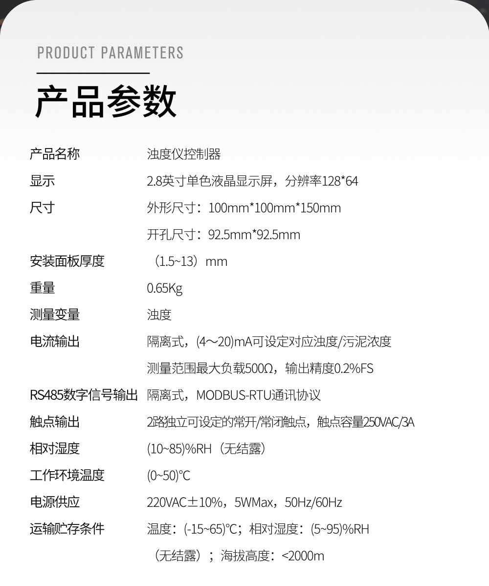本濁度/污泥濃度控制器是一款智能在線化學(xué)分析儀器,廣泛應(yīng)用于火電、化工化肥、冶金、環(huán)保、制藥、生化、食品和自來水等各個行業(yè)。